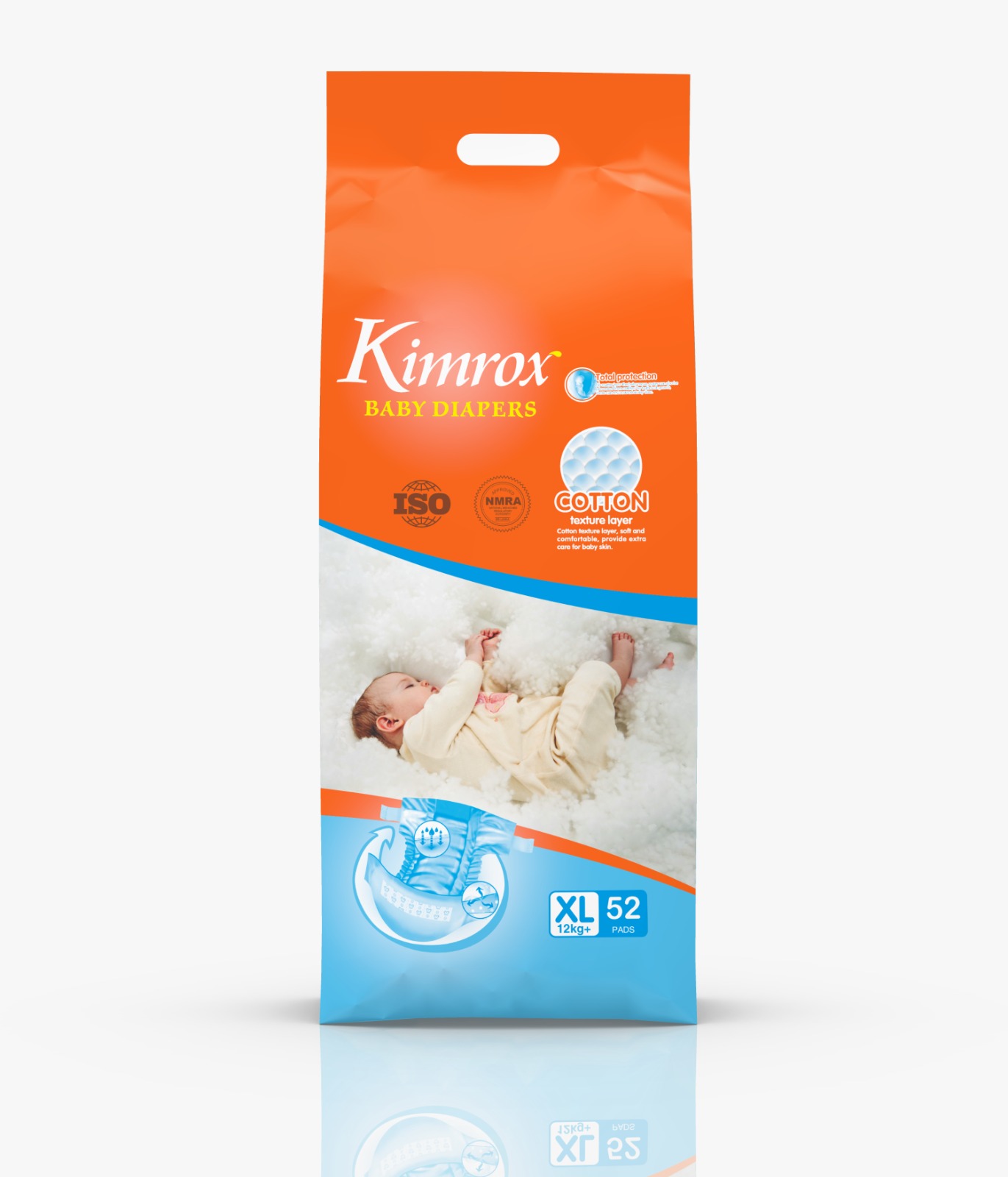 Kimrox Baby diaper advertisement with features.